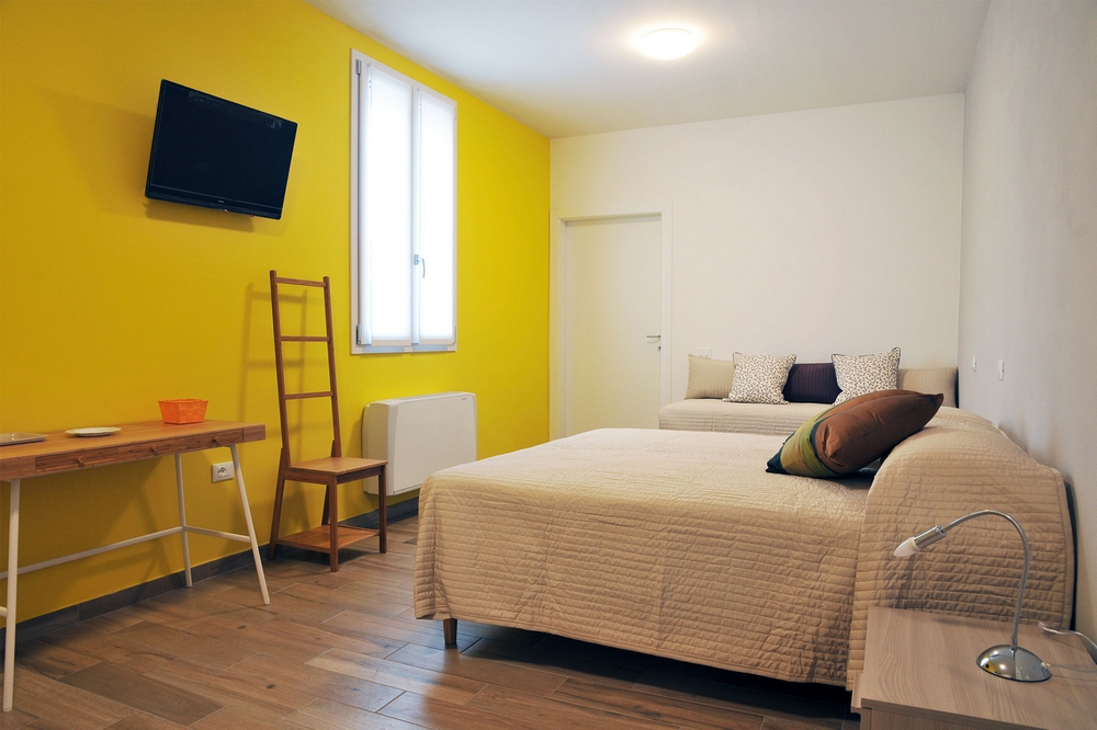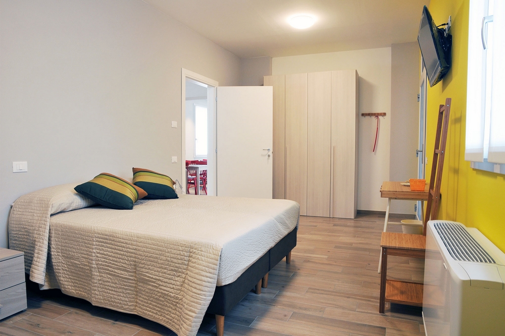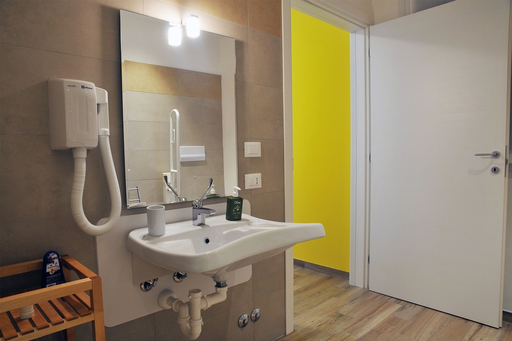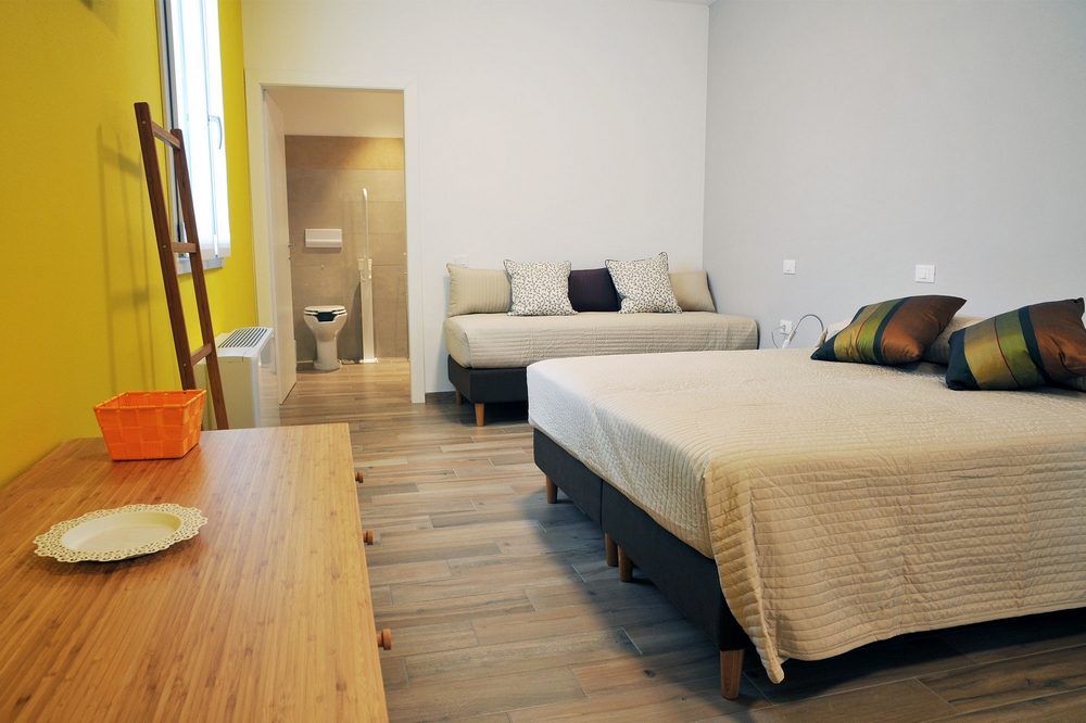 Room, very spacious and bright, equipped with a broad double bed and a sofa. The room has a private bathroom suitablealso for people with disability, with WC, bidet, shower and hair dryer. The room has a TV, free WiFi, air conditioning and heat to host you in all the seasons.